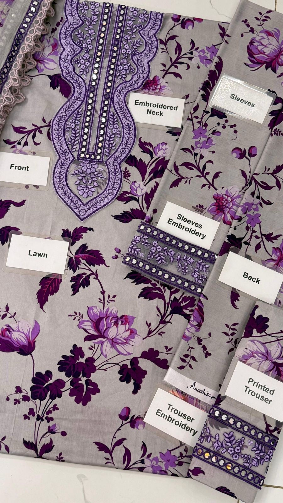 •Printed Chiffon Dupatta with 4 side embroidered 9mm sitara lace